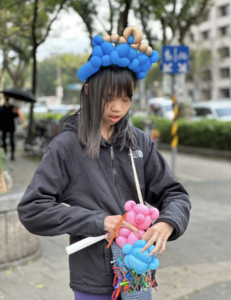 林璿淇解釋,自己在學校的社團學習了折氣球的技能後,就一直很希望能夠藉由自己的技能幫助環境議題。因此,今天才會在現場,希望能讓大家意識到資源運用的合理性,「內用其實根本不需要環保杯」
